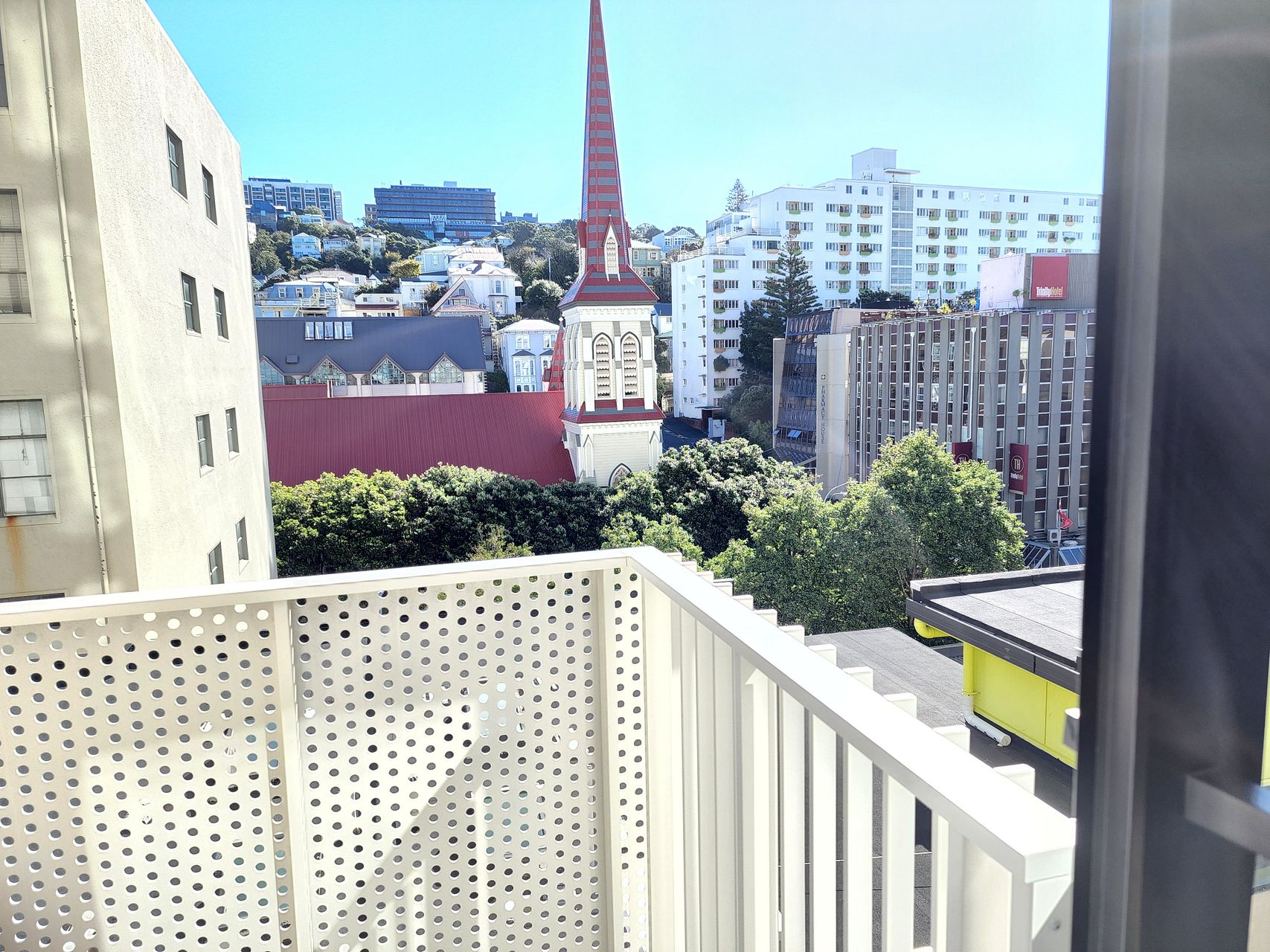 – Balcony with views to VUW, St James church