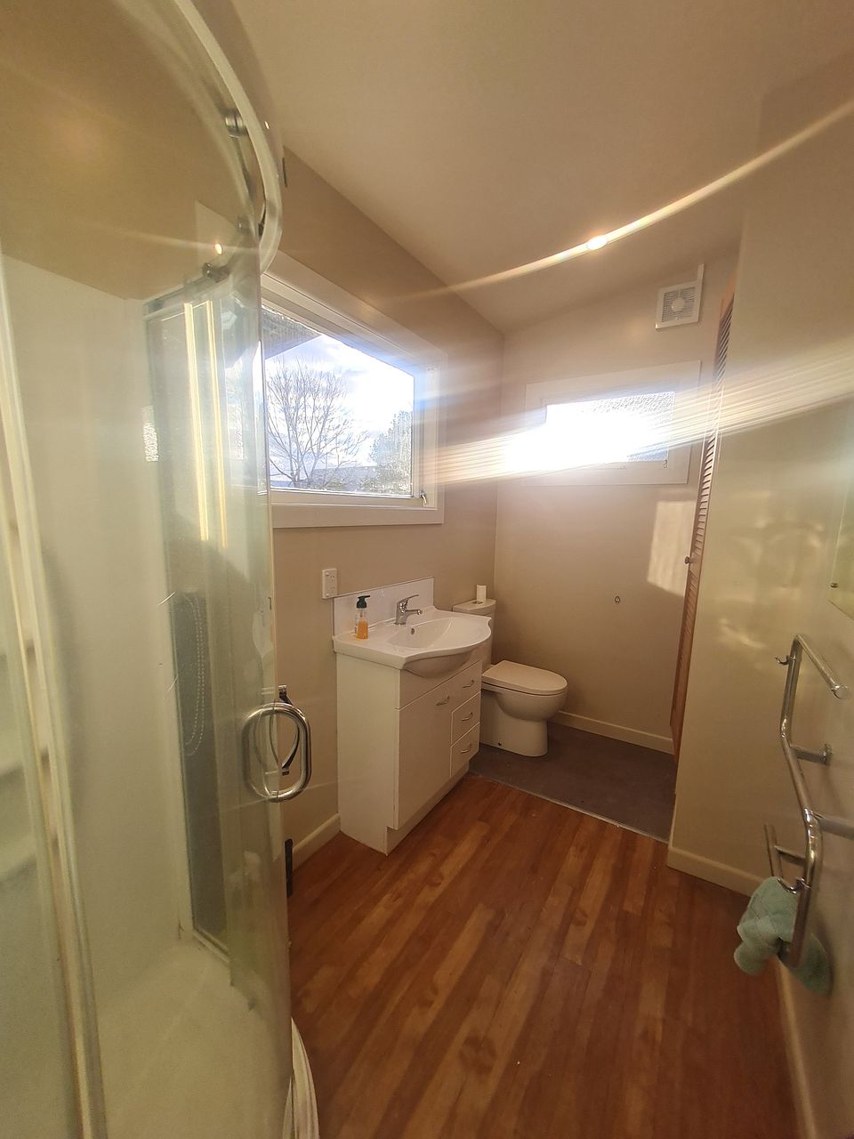 - Bathroom with shower, toilet, heated towel rail (no bath)