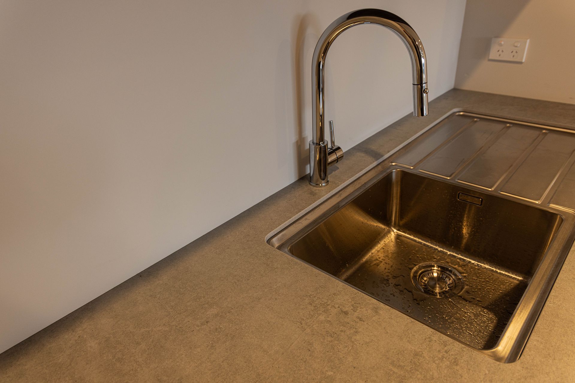 High-End Kitchen: Featuring a stunning and durable stone Dekton benchtop and quality appliances.