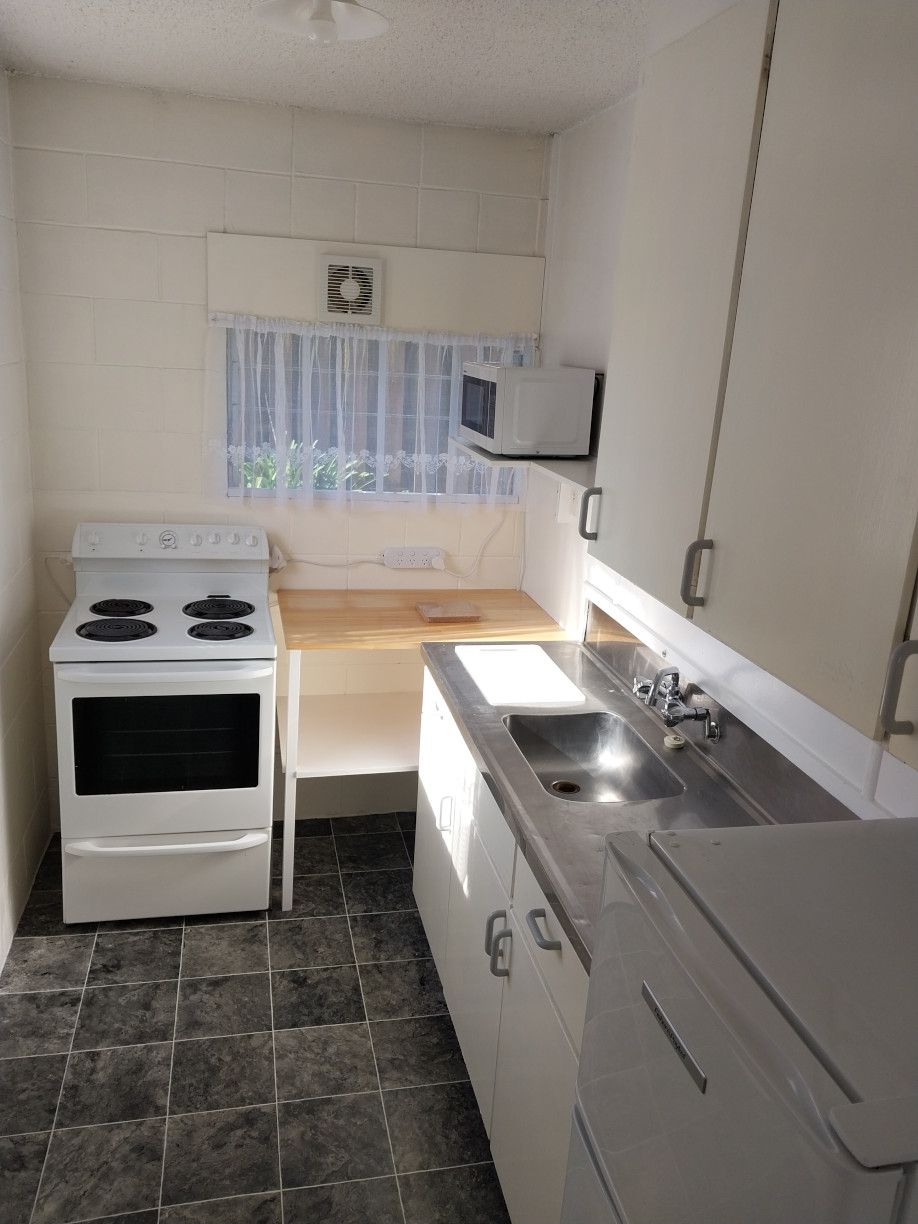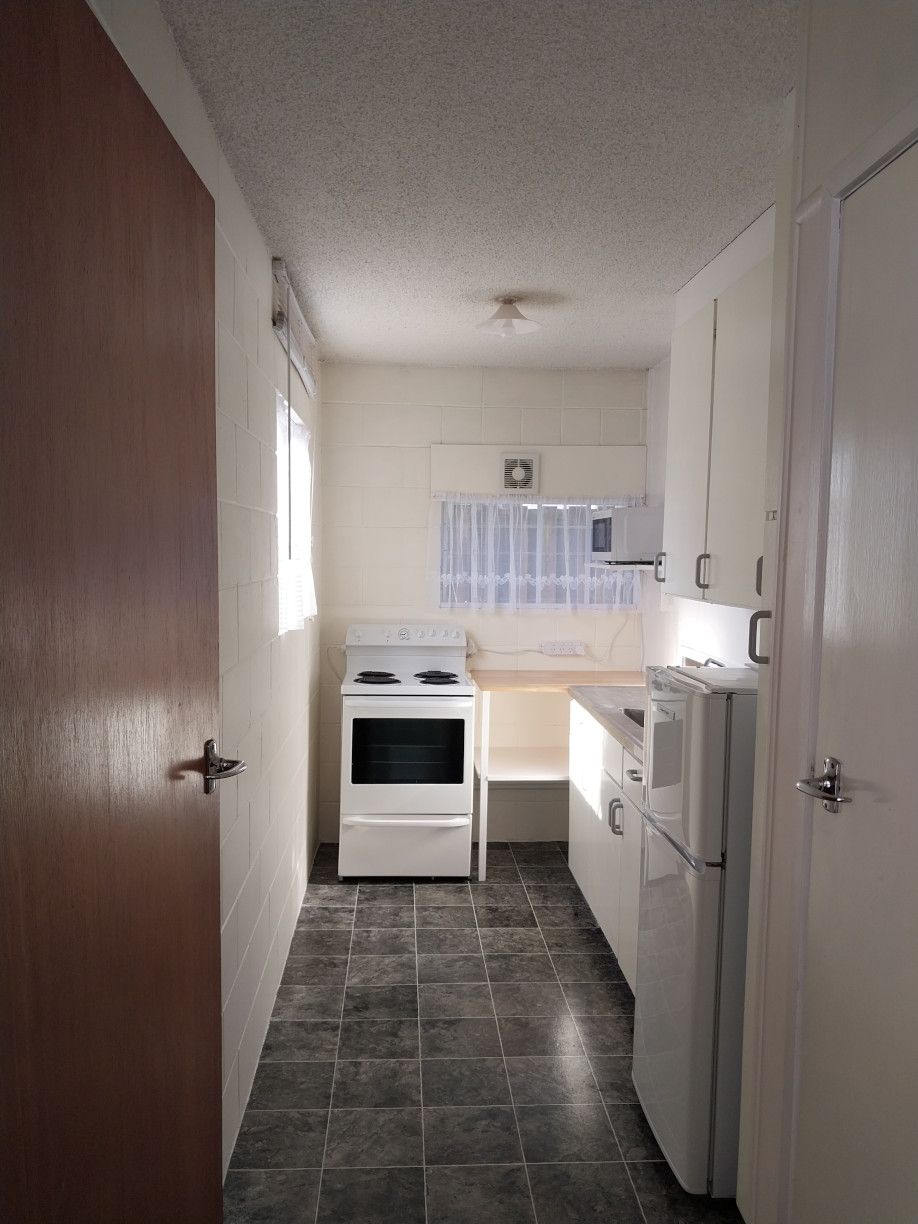 Sunny, quiet, two bedroom downstairs flat in a block of 4 flats, situated on a back section near the CBD. There is one off street park provided. The flat is clean, neat and tidy. The lawns and grounds are maintained by the landlord. The landlord lives in one of the upstairs flats.