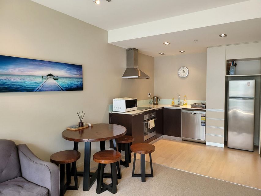 This apartment comes with quality fixtures and fittings, double glazing, north-facing windows and balconies, and these 2 beds includes furniture . Whiteware is included too!