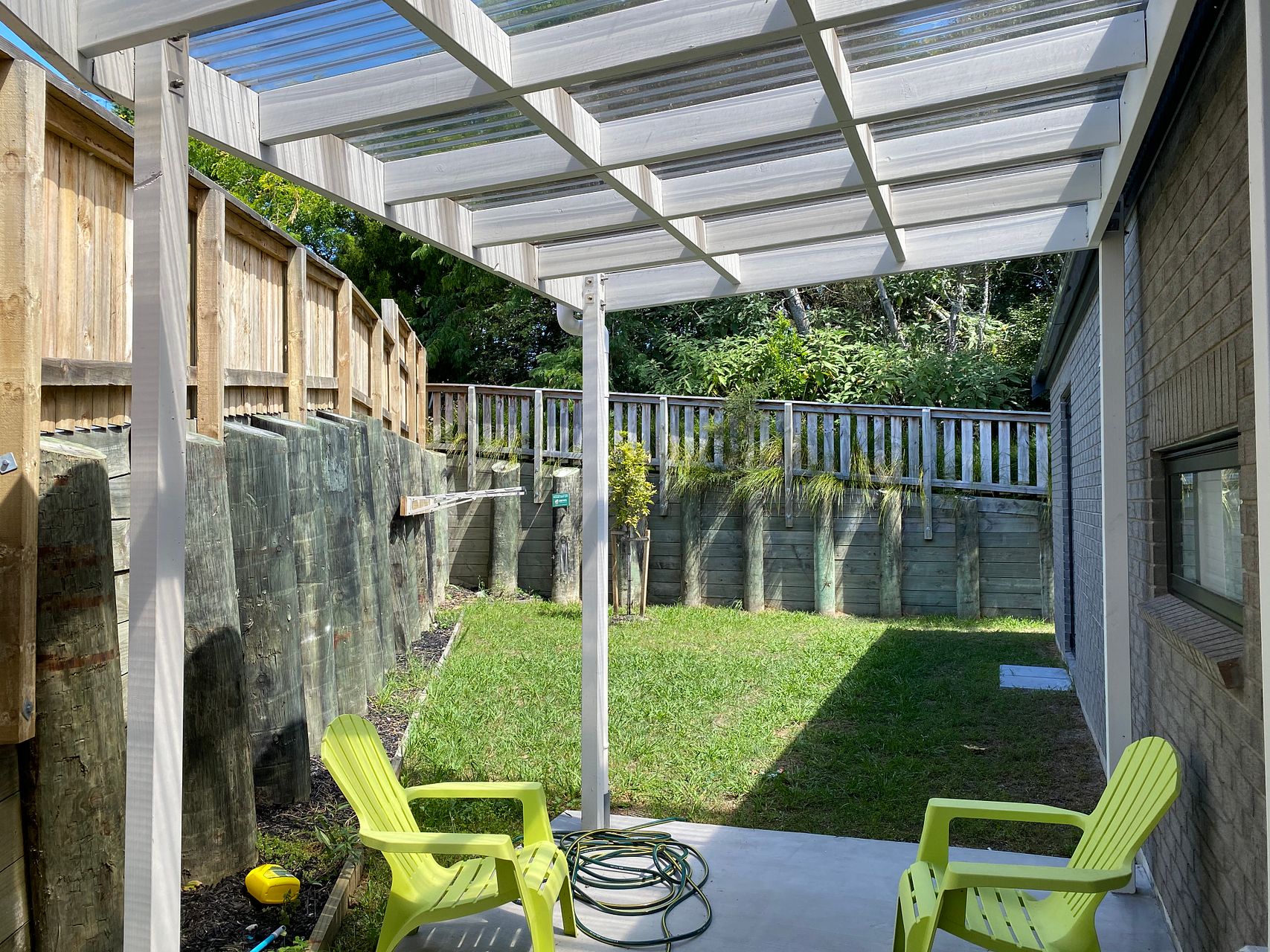 - Fully fenced easy care backyard with covered Patio.