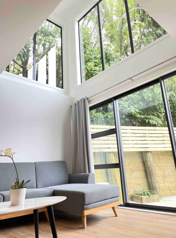 Spacious lounge with French door to private backyard.