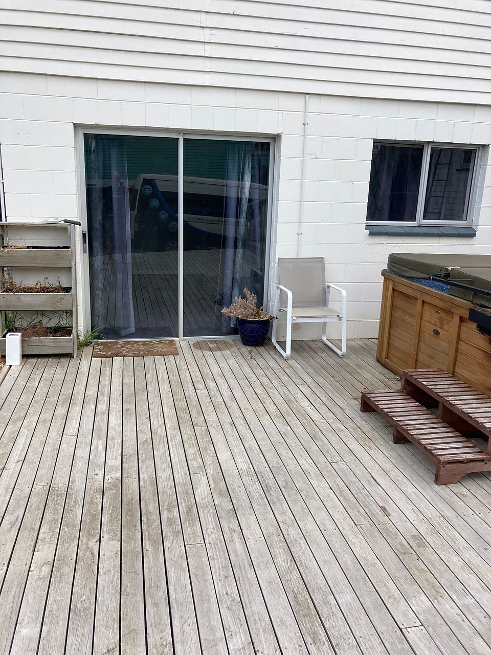 Outside is a sun-drenched deck, 4 bay detached powered garage and parking for a caravan or boat.