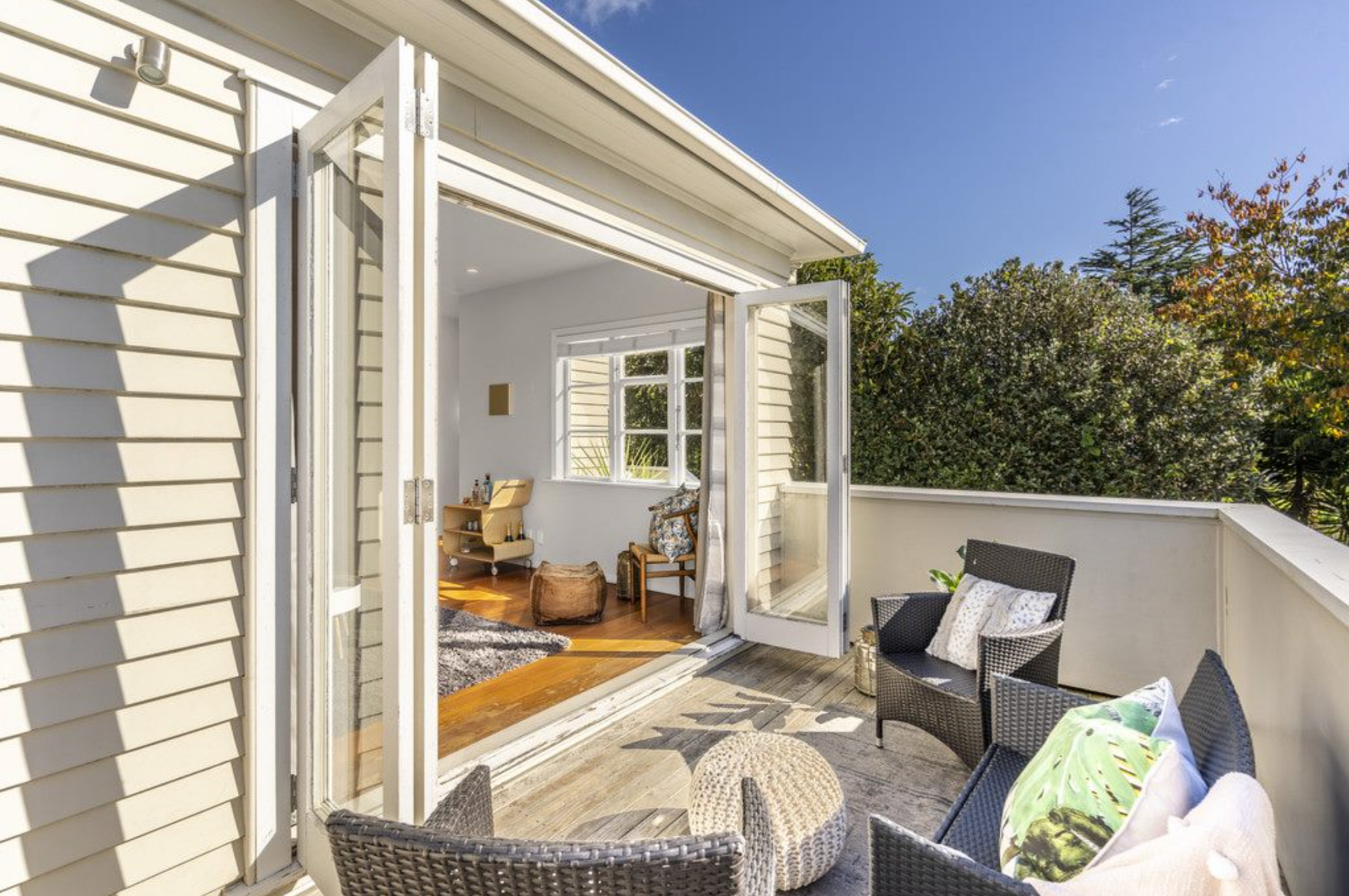 Bifolds on both sides ensure maximum sunlight. Flowing from the living room is a very large deck that will be great for entertaining. All of the living areas are native New Zealand timber that makes this home quintessentially Kiwi!