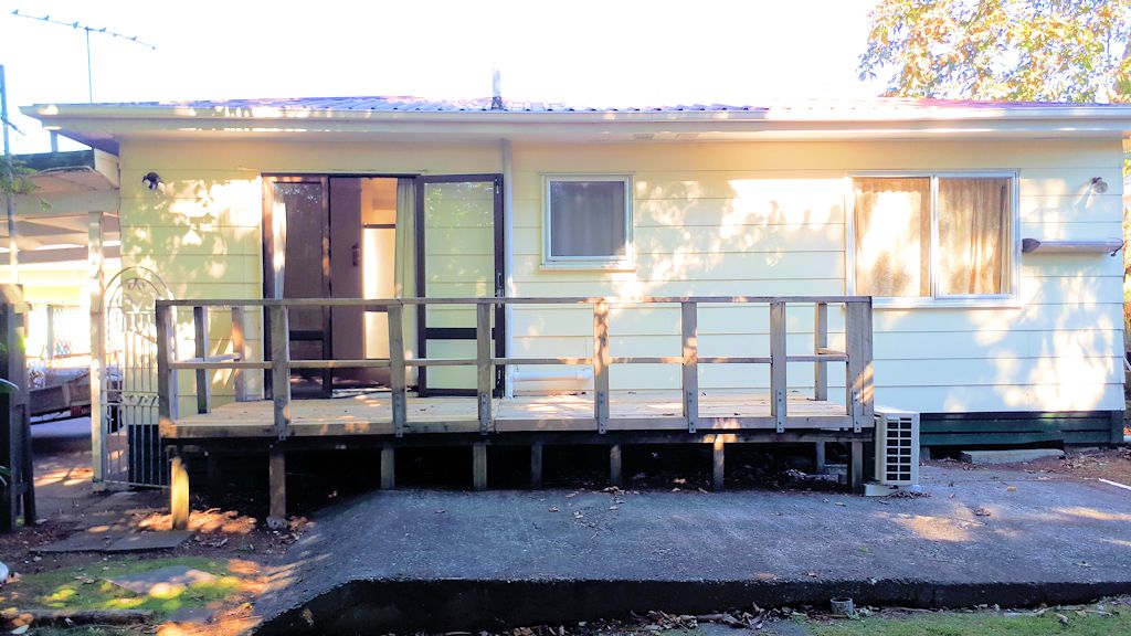 Folding doors in the living area gives exclusive access out to a sunny deck area and private-use lawn.