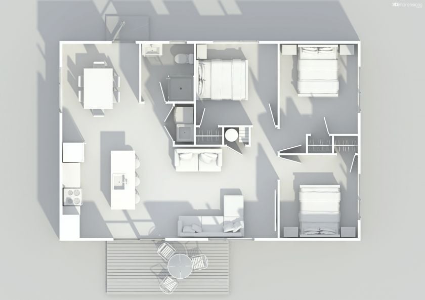 As a smaller house, the house will be available to 3 adults with one child or 2 adult parents with 2 to 3 children.