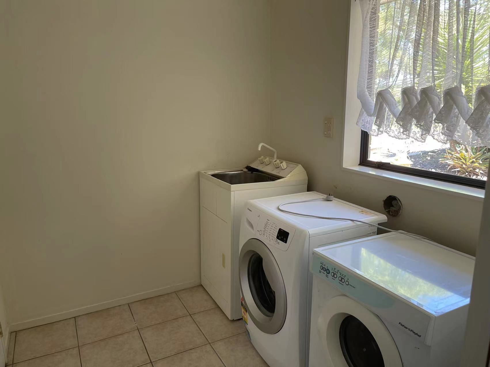The roomy laundry is just here. Easy to get to from inside and out. A perfect place to throw the clothes after a day's work in the grounds.