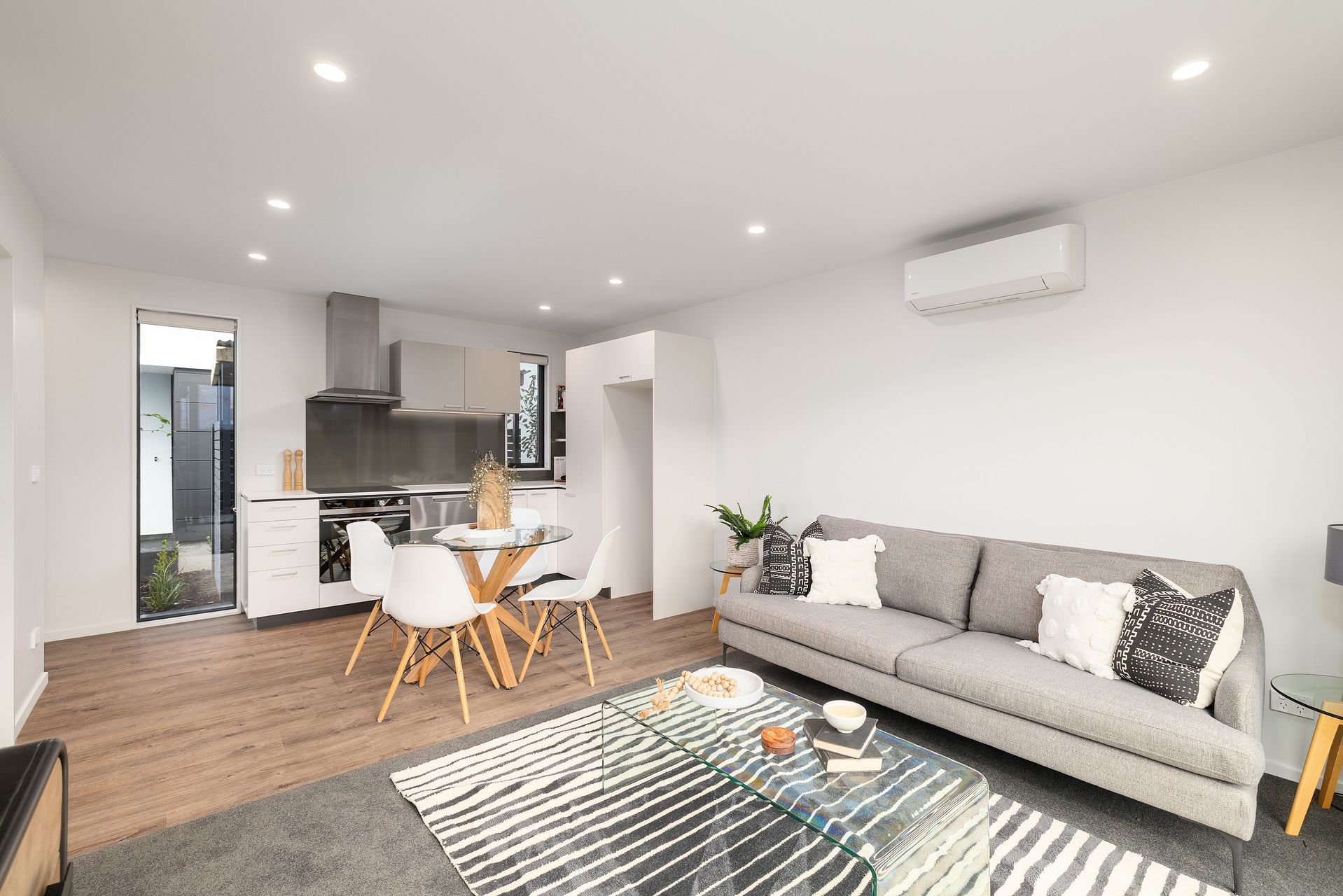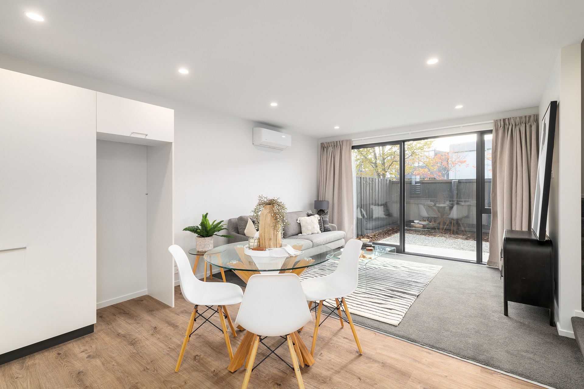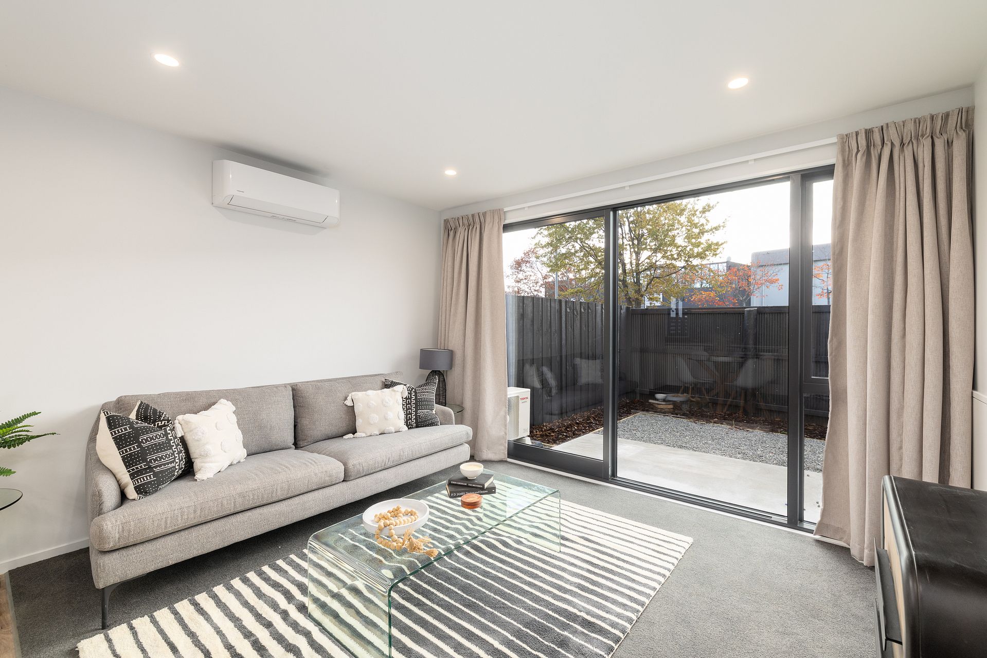 -- Sunny open plan living area with heat pump