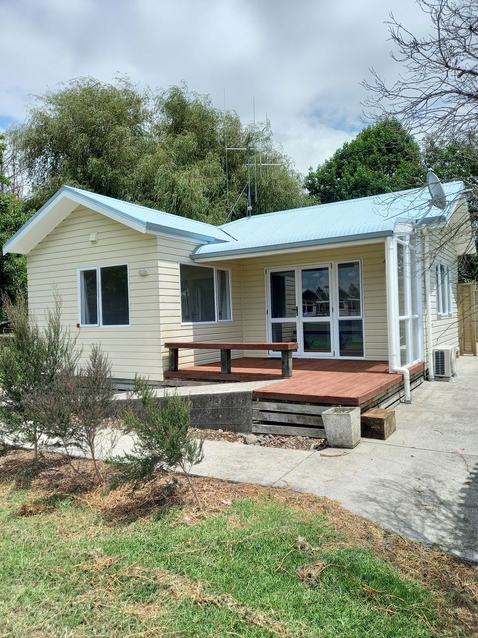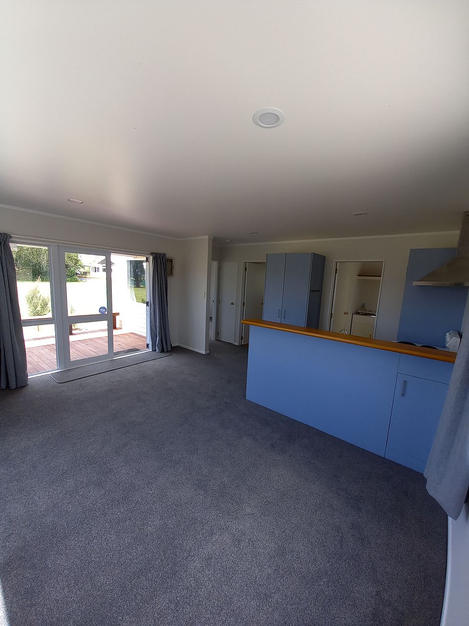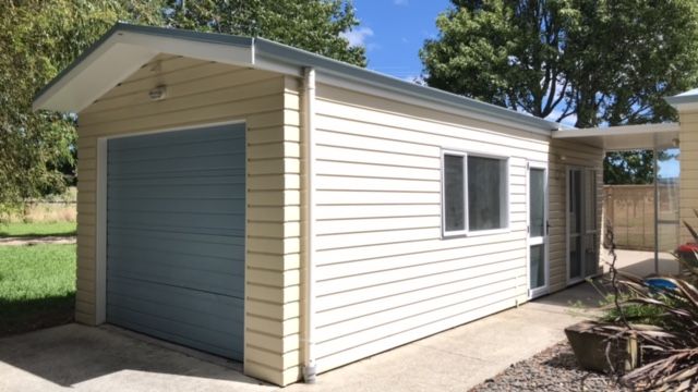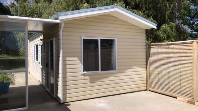 1 bedroom inside, 1 attached to single garage. We live on site in another house across the massive lawn. 5 min from Papamoa, 10 min to Bayfair, in the country near Papamoa Hills - Te Puke side, so the outlook is paddocks & Papamoa Hills.