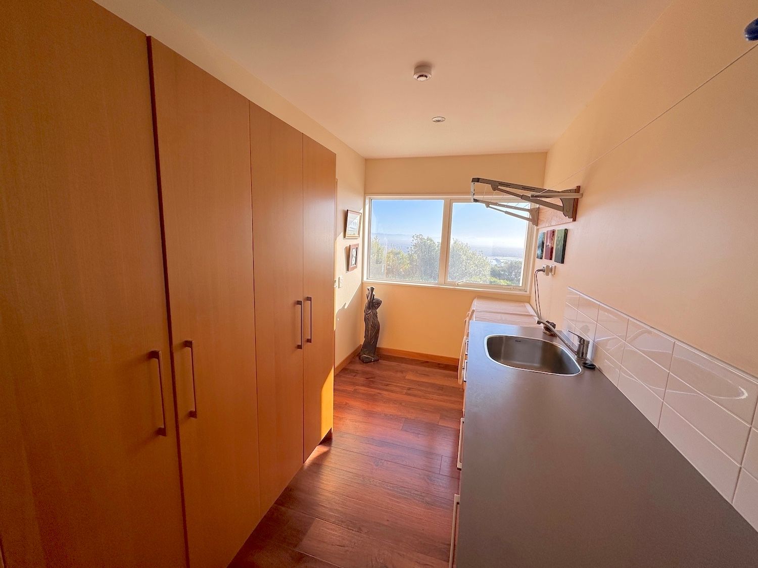 The kitchen has two walk-in pantries.