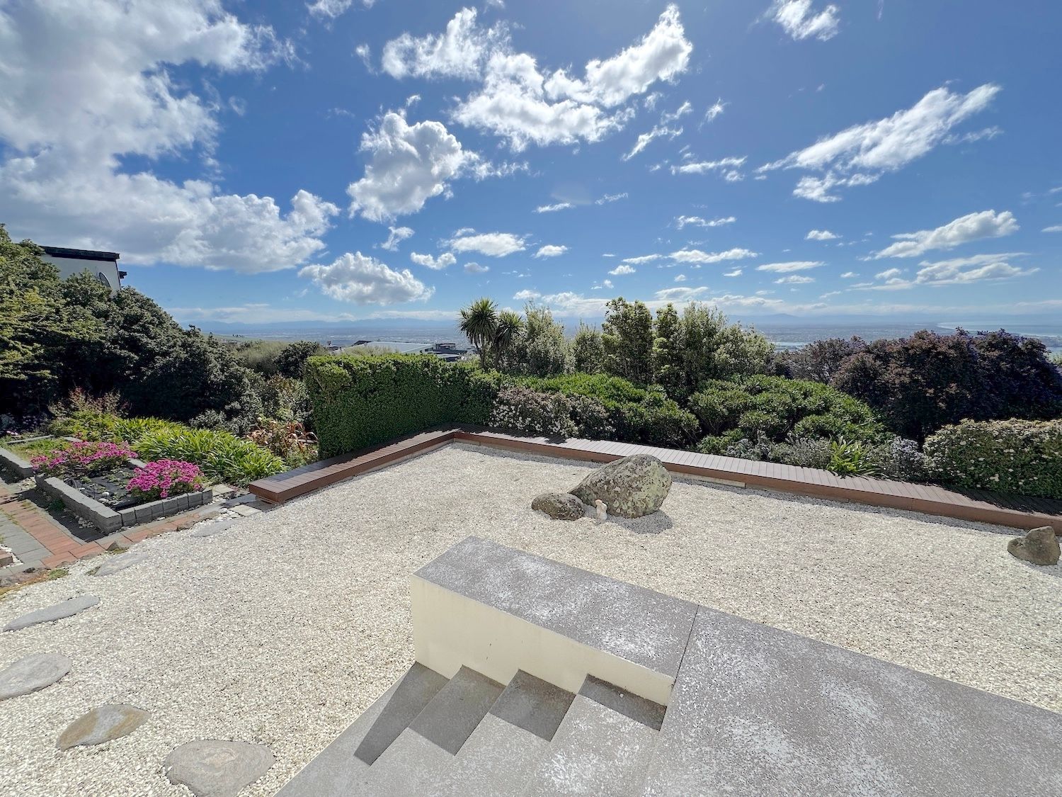 The garden is big on several levels and has plenty of plants while there is no lawn to mow.