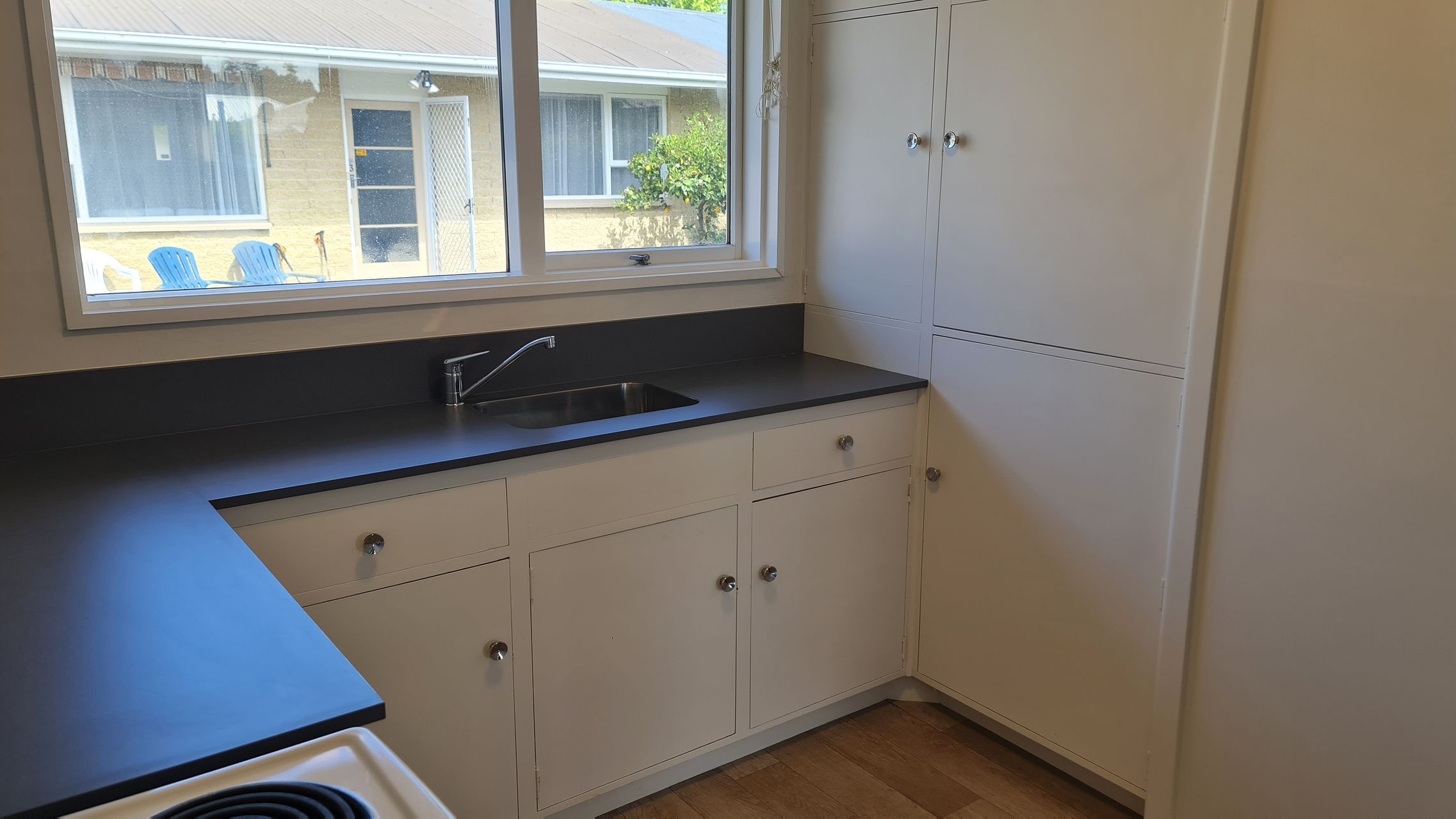 Shingled back courtyard to help with being easy care plus your own clothesline