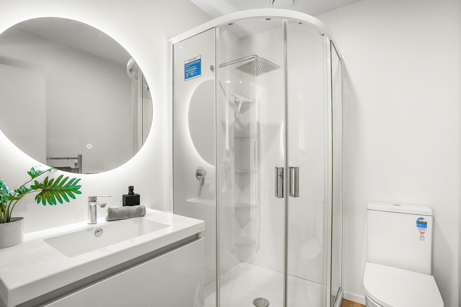 The lovely home has two full size bedrooms one that connects to the patio The large open living space connects with a lovely kitchen which is well designed and consists of European appliances, plenty of storage and bench space. The bathroom has led lit mirror , a rain shower and all modern conveniences which you would expect from a new build.
