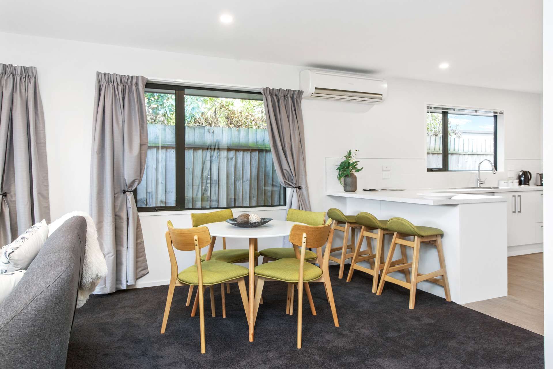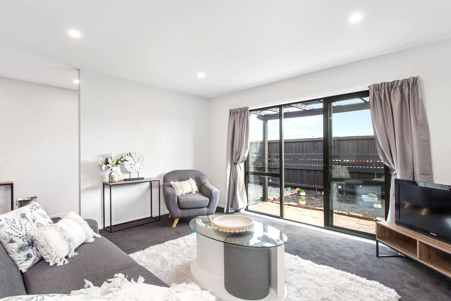 A heat pump and double glazing throughout keeps you warm in winter, with quality carpets and drapes ensuring comfort all year round. Spacious carpeted double garage with laundry area built in, and space for further two cars in driveway.
