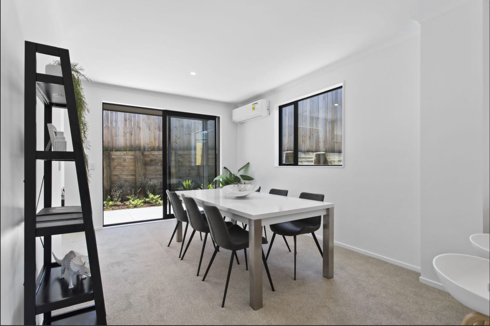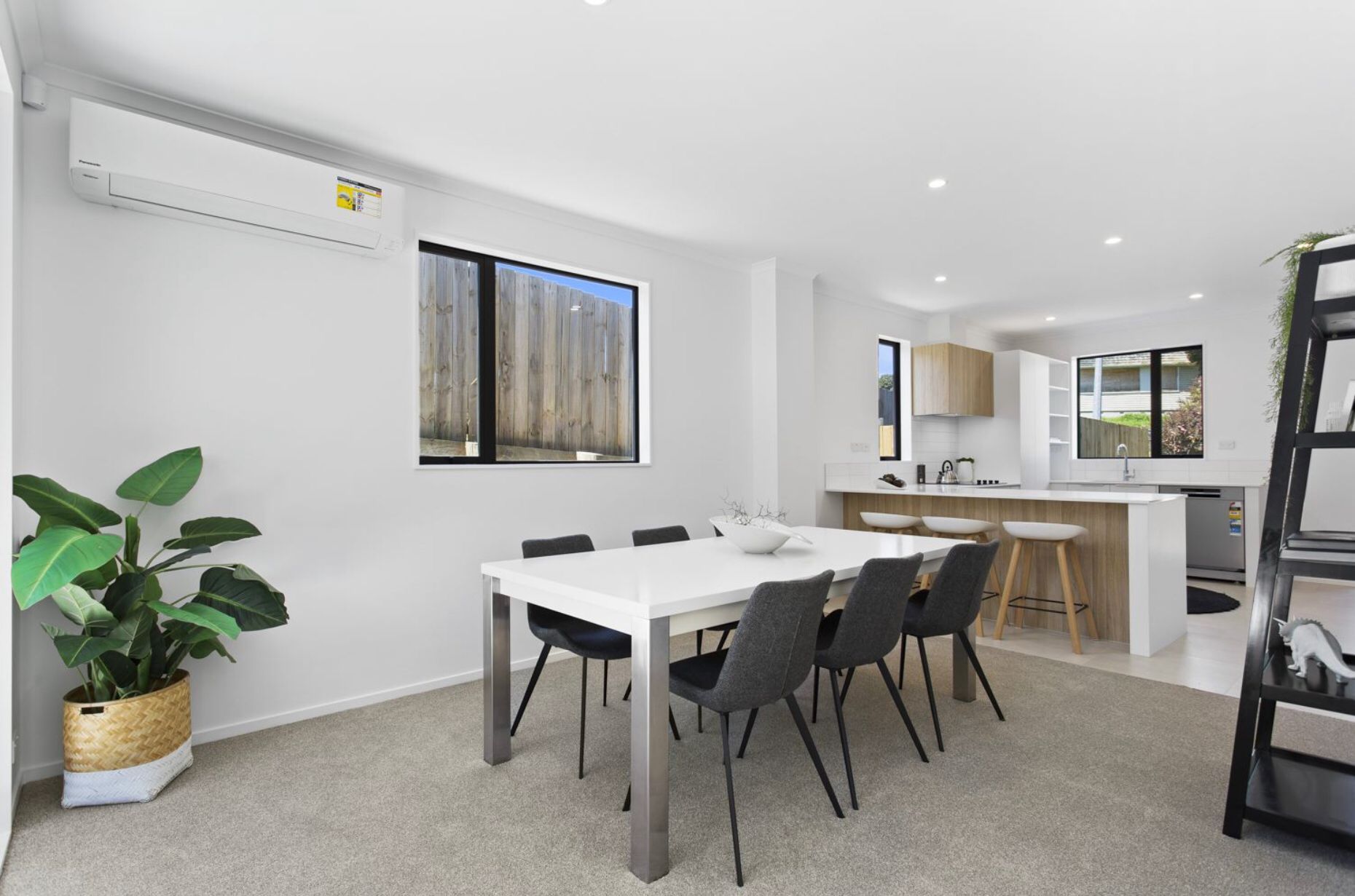 - Open plan kitchen and dining.