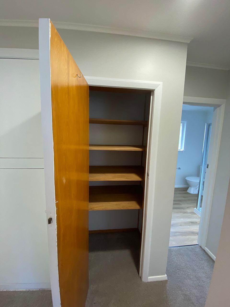 It has 2 bedrooms with a combined bathroom, with relatively new carpet and paint throughout.