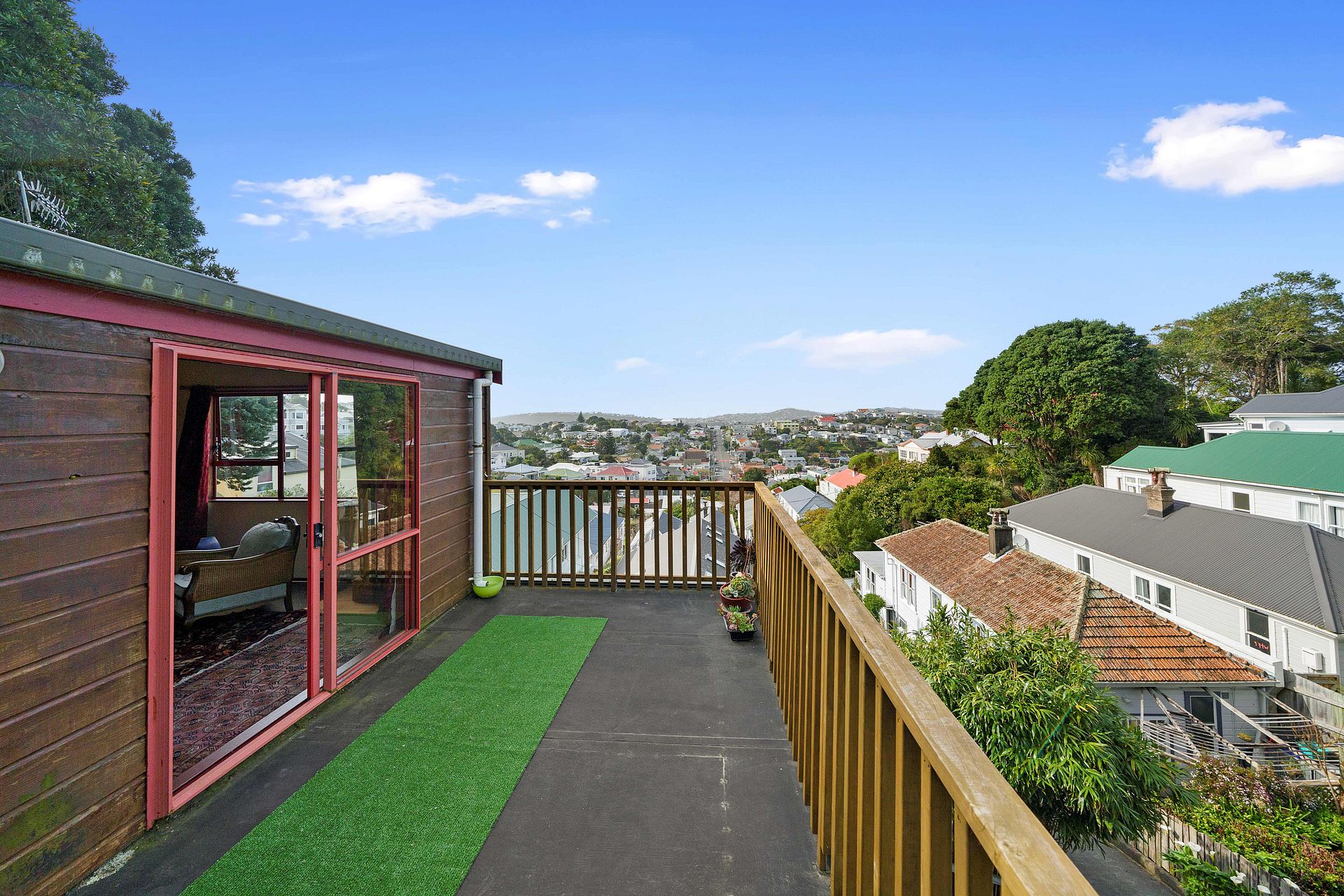 e) Good sized deck off the lounge with fabulous views out over Hataitai Central location –