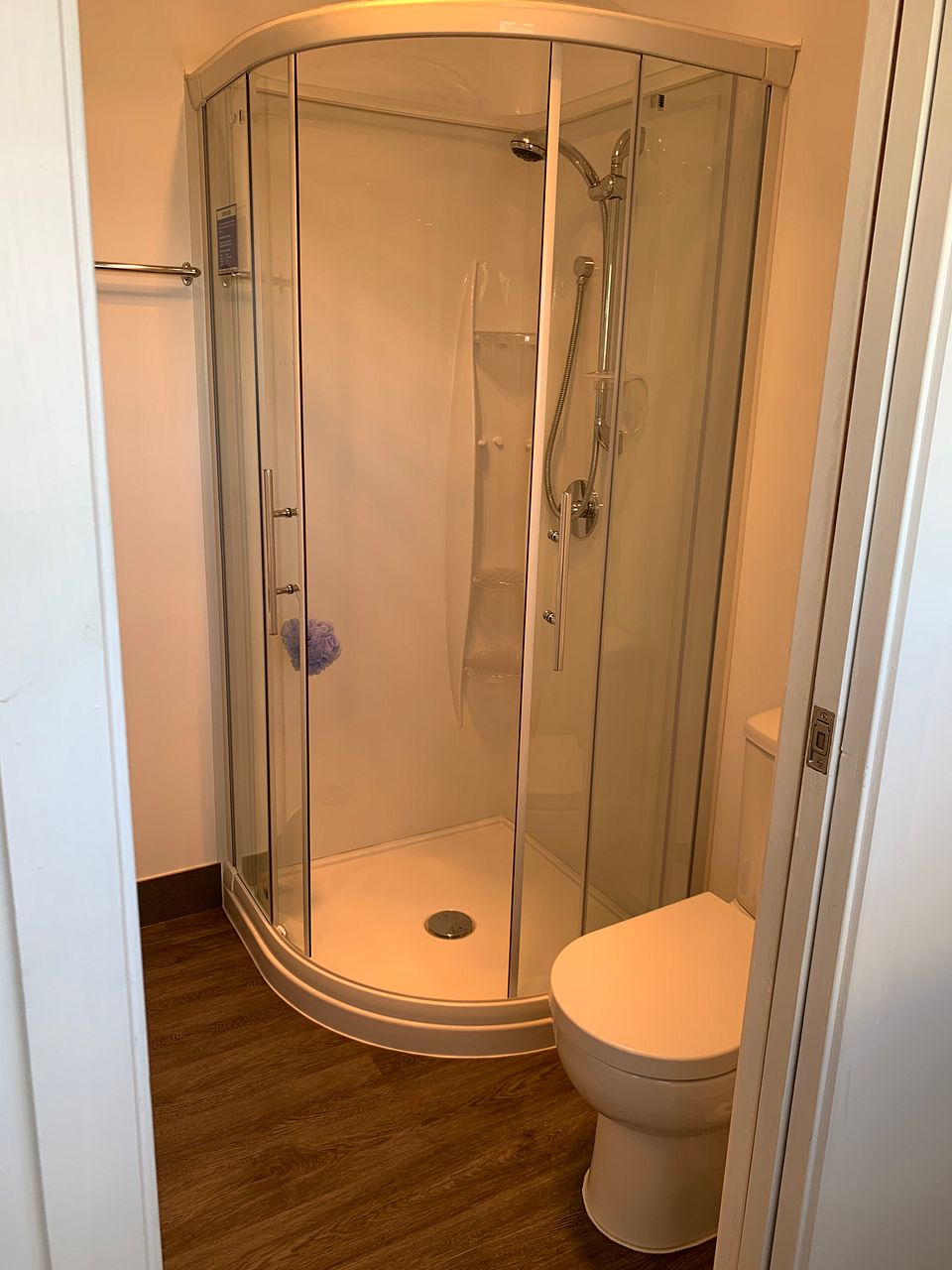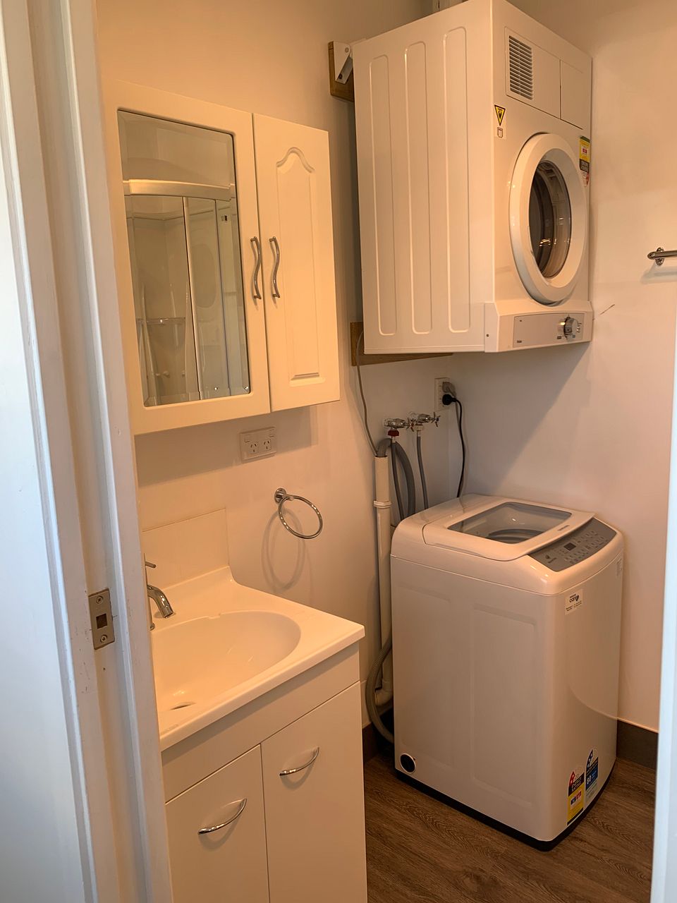 The new bathroom fit-out includes a new shower, toilet, washing machine and dryer.