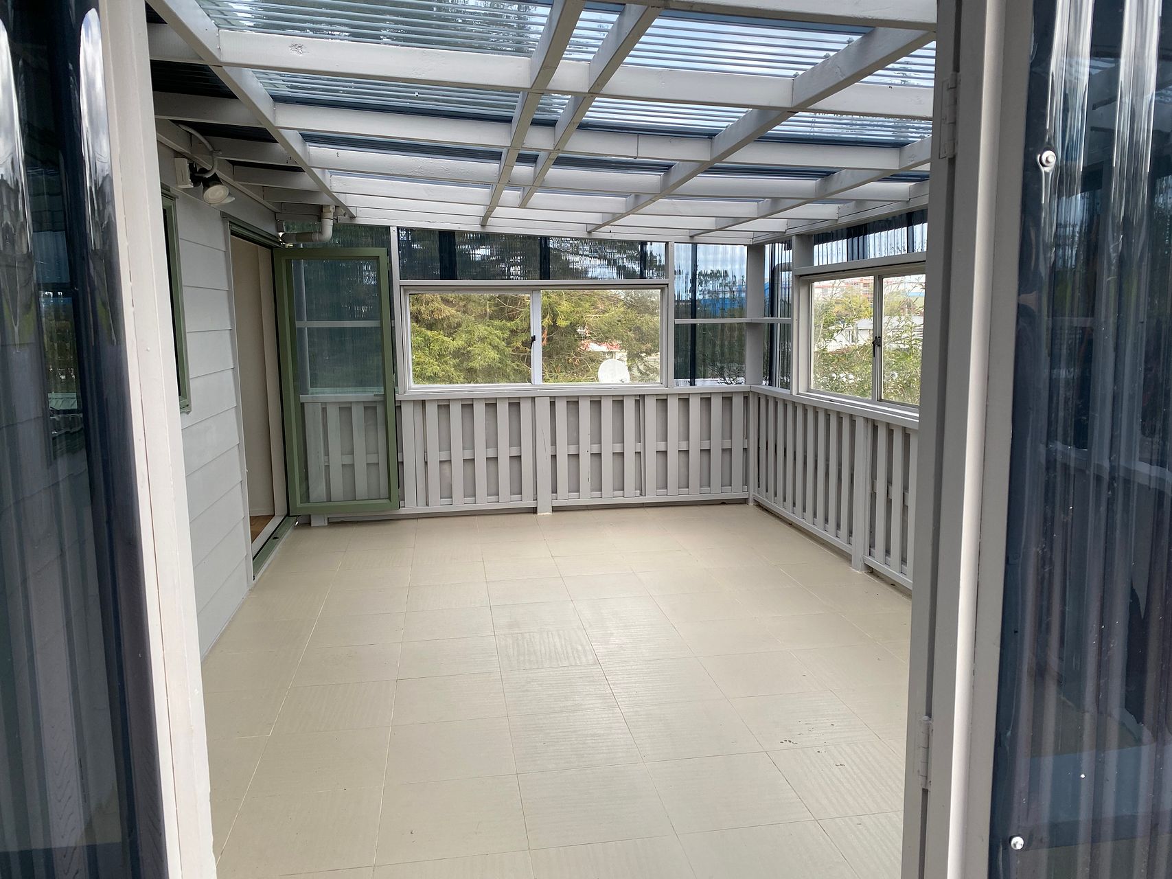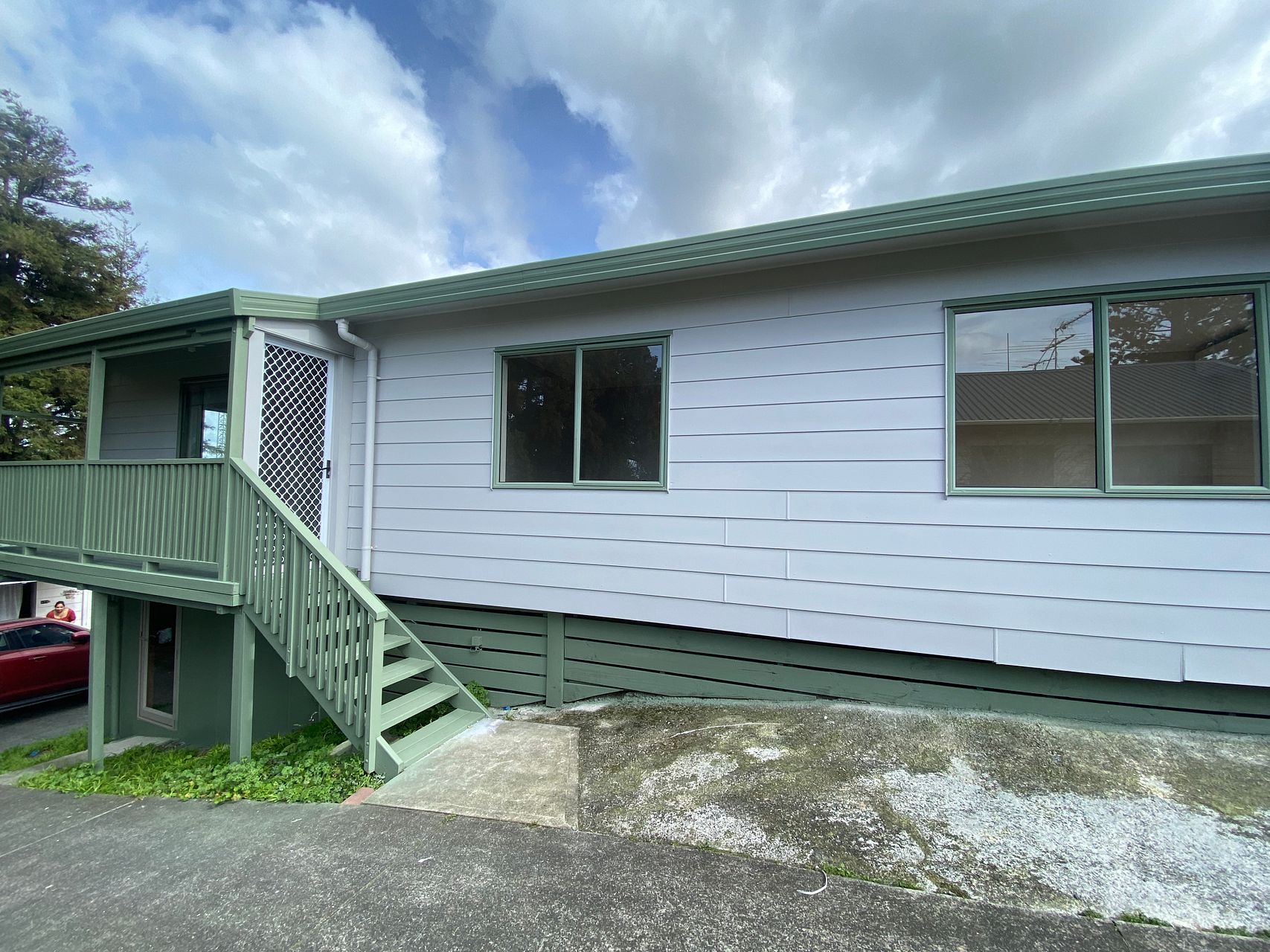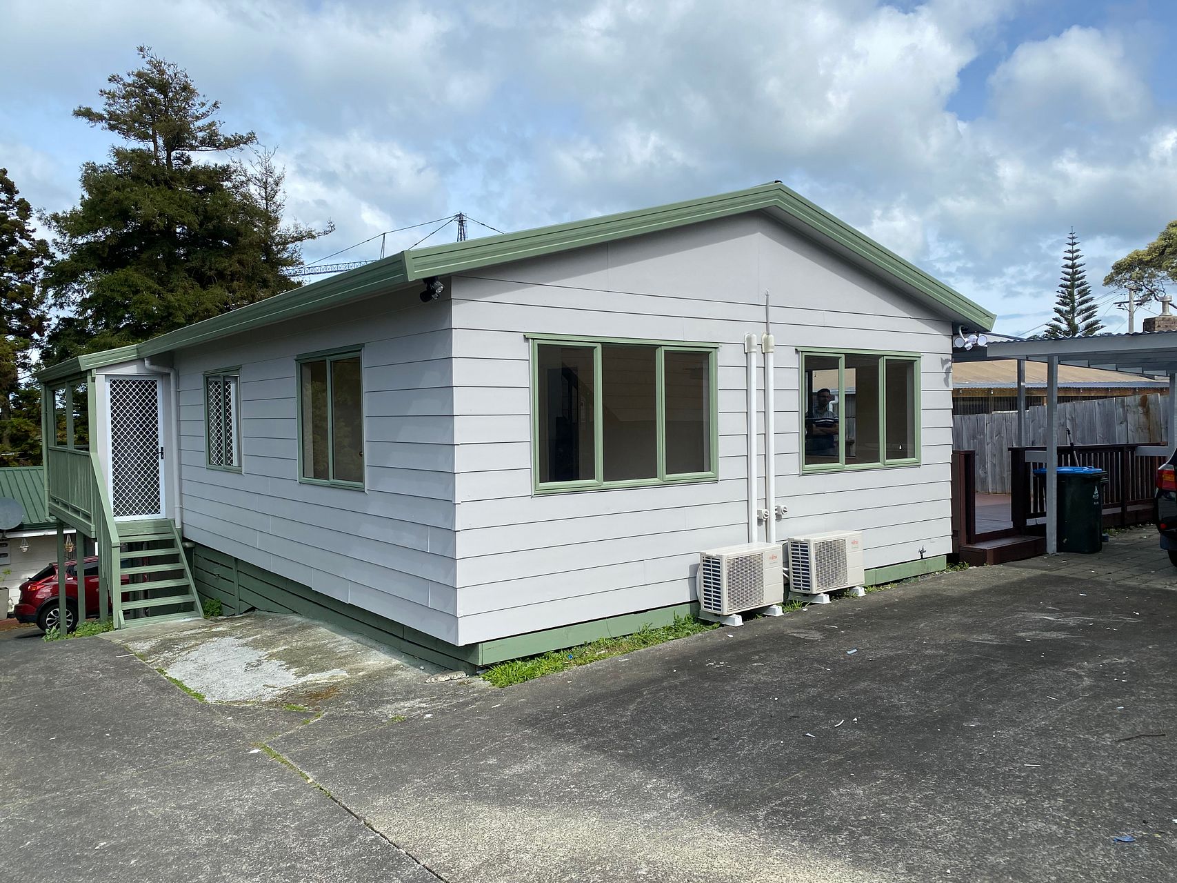 A Big Deck at the back where half of it is fully covered and tiled, it can be used as sunroom or kids play area in rain. One covered and One open Car Park.